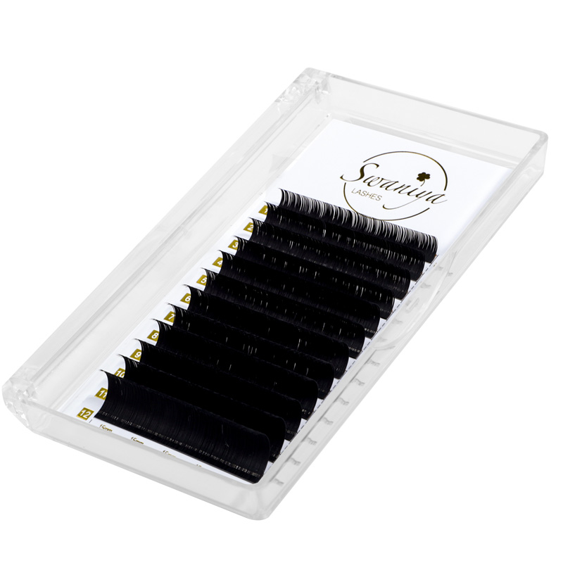 Nagtatampok ang Swaniya Classic Lash Extension ng isang kulay ng Matte Black na walang asul na tint, na ginagawang perpekto ang mga ito para sa paglikha ng mga klasikong lash set. Ang malalim na itim na kulay ay tumutulong upang maipahiwatig ang likas na kagandahan ng mga mata, na ginagawang mas malaki, mas maliwanag at mas kaakit -akit.