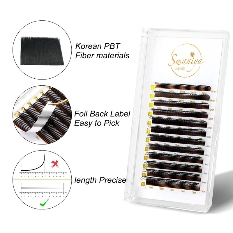 Ang Swaniya wispy eyelash extension ay isang estilo ng extension ng eyelash na perpekto para sa mga nais ng isang natural ngunit kaakit -akit na hitsura. Ang mga wispy eyelash extension ay may isang assortment ng haba, na may mas mahabang lashes na halo -halong may mas maikli, wispy lashes. Ang kumbinasyon na ito ay nagbibigay ng isang walang kahirap -hirap, wispy na hitsura na nagpapabuti sa iyong likas na kagandahan.